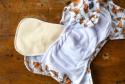 Indlægget i denne ble er yderst med staydry og inderst en absorberende kerne bestående af bambus og mikrofiber, en kombination der er moderat velsugende og hurtigt tørrende. Bleen er super blød og behagelig for dit barn at have på og staydry giver en tør fornemmelse. Det er særligt godt hvis dit barn ikke kan tåle at have en våd ble mod huden.