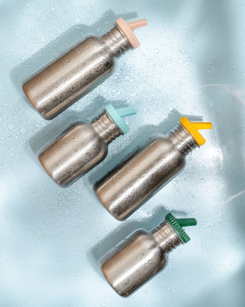 Husk at købe vippetud og sugerør (kun til 300 ml og 500 ml) ved siden af. Vippetuden er designet til at være spildfri når den er lukket. Når vippetuden åbnes, har den et lille hul i toppen, der forhindrer dannelse af undertryk i flasken, hvilket gør det nemt at få vand ud af den, hvilket ofte er et problem ved andre drikkedunke.