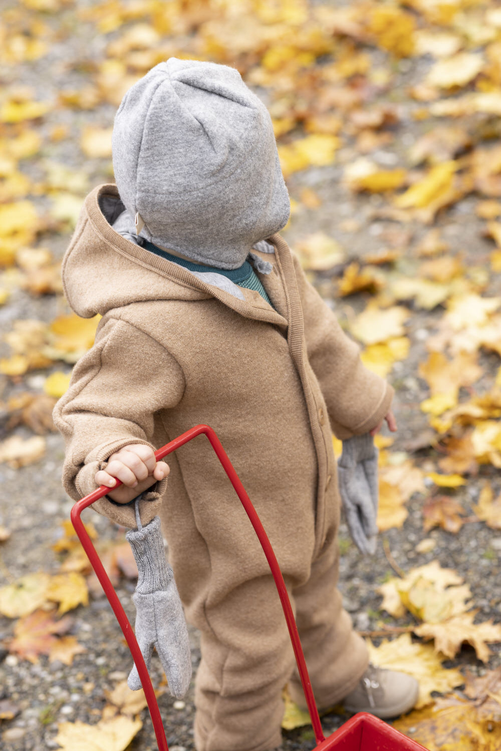 Kogt uld opnår sin vindtæthed og vandafvisende karakter gennem en unik proces, hvor uldfibrene strammes og filtreres. Dette skaber en tæt og kompakt struktur, der effektivt afviser vind og vand, og holder barnet varm og tør i al slags vejr.