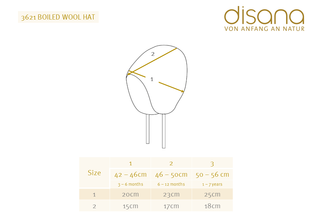 Den "aldrig-kolde-ører-igen"-hue. Disanas hue i det lækreste vind- og vejrresistente økologiske kogte uld har en specielt lav skæring og dækker helt over ørerne og kinderne. To snore sørger for, at hatten ikke glider af, selv når man leger i sneen. Desuden sikrer den unikke pasform at huen sidder på hovdet og ikke glider af. På indersiden er den foret med særligt blød økologisk bomuld - altså uundværlig på de koldere dage.