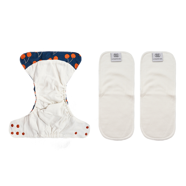 Selve det vandtætte lag er i ekstra strakbart silkeblødt PUL. Bagerst i bleen, er der en lomme, der gør det nemt at lægge de sugende indlæg i. Drenge eller børn der sover på maven, kan med fordel have et indlæg i længden og et indlæg foldet dobbelt oppe foran.