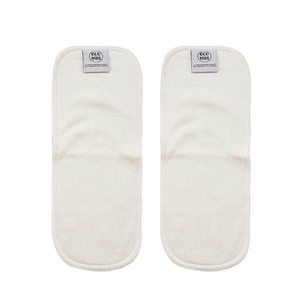 Der er 2 velsugende indlæg i hver 4 lag bambus/bomuld. De knappes i foran og bag i, hvilket forkorter tørretiden, når den kan skilles helt ad. Samtidig kan du folde dem, så du har det sug lige der hvor det gælder.