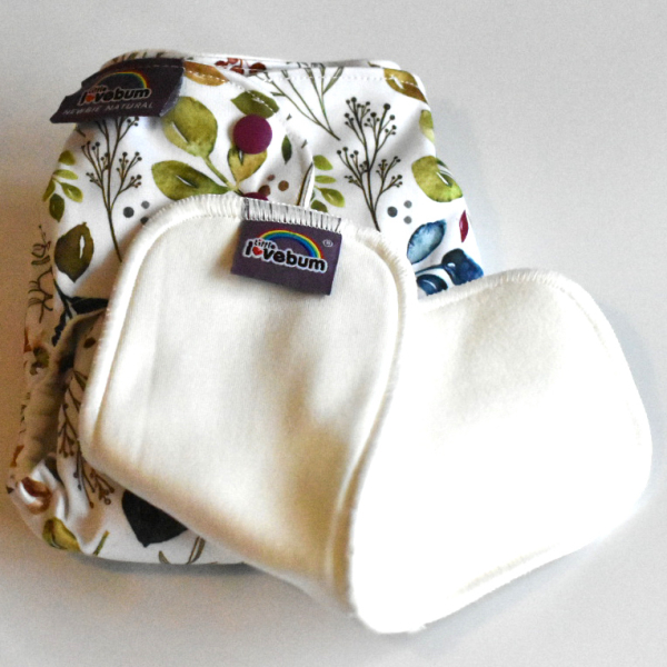 Den Newbie Natural leveres med en ekstra forstærkning, der er foret med fleece for at holde din babys numse tør. Hvis du foretrækker, at der kun er bomuld mod babyens hud og ikke fleece, kan du vende forstærkningen om eller putte den i lommen.